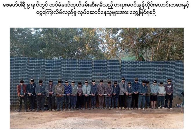 ရှမ်းပြည်နယ်(မြောက်ပိုင်း)၊ မိုင်းရယ်မြို့နယ်၊ မိုင်းဟဒေသအတွင်း တရားမဝင်အွန်လိုင်းလောင်းကစားနှင့် ငွေကြေးလိမ်လည်မှုဆောင် ရွက်နေသည့် တရုတ်နိုင်ငံသား ၂၁ ဦး ထပ်မံဖော်ထုတ်ဖမ်းဆီးရမိ