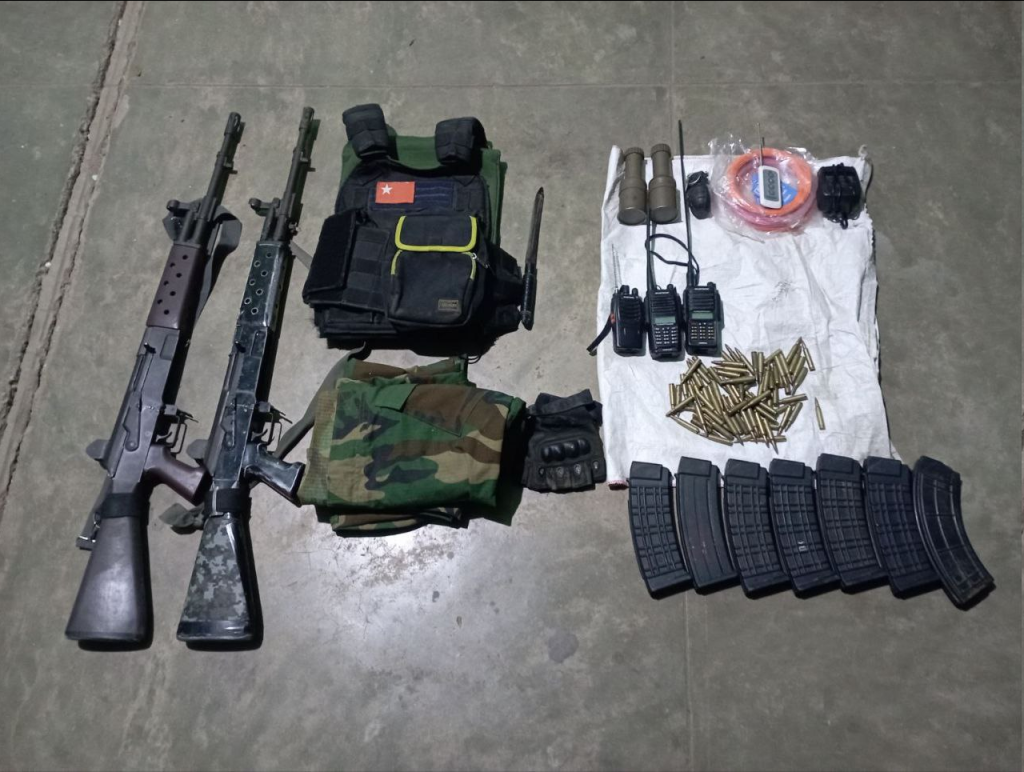 ယင်းထိတွေ့တိုက်ပွဲမှ အကြမ်းဖက် PDF အလောင်း ၁ လောင်း၊ မောင်းပြန်သေနတ် ၂ လက်၊ ကျည်အိမ် ၇ ခု၊ ၅.၅၆ မမကျည် ၂၀၀ တောင့်၊ စကားပြောစက် ၃ လုံး၊ လက်ပစ်ဗုံး ၃ လုံး၊ ကျည်ကာအင်္ကျီ ၁ ထည်၊ ဘတ္ထရီ ၂ လုံးတို့ကို သိမ်းဆည်းရမိကြောင်း သိရသည်။