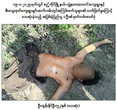 မန္တလေးတိုင်းဒေသကြီးအတွင်းက အပြစ်မဲ့ပြည်သူတွေကိုအကြောင်းမဲ့လုပ်ကြံသတ်ဖြတ်ခဲ့တဲ့ တရားခံ ကျား ၆ ဦးကို လက်လုပ်ပစ္စတို သေနတ် ၄ လက်၊ ၉ မမ ကျည်၁၈ တောင့်၊ လက်ပစ်ဗုံးမျိုးစုံ ၁၃ လုံးတို့နှင့်အတူ ဖမ်းဆီးရမိခဲ့တယ်လို့ သိရပါတယ်။