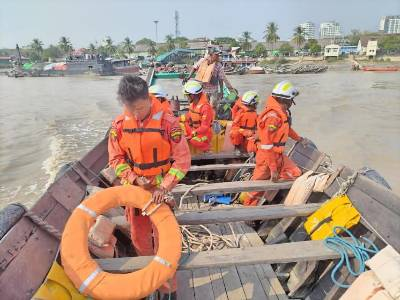 သမ္ဗာန်ယာဥ်တိမ်းမှောက်သည့်နေရာသို့ ကလီဆိပ်မှ ပန်းဆိုးတန်းဆိပ်ကမ်းအထိ ဆိပ်ကြီးခနောင်တိုမြို့နယ် မီးသတ်စခန်းမှ ရှာဖွေကယ်ဆယ်ရေးတပ်ဖွဲ့ဝင်များမှ လည်းကောင်း၊ ပန်းဆိုးတန်းဆိပ်ကမ်းမှ ဗိုလ်တစ်ထောင်ဆိပ်ကမ်းအထိ ကျောက်တံတားမြို့နယ် မီးသတ်စခန်းမှ ရှာဖွေကယ်ဆယ်ရေးတပ်ဖွဲ့ဝင်များမှလည်းကောင်း ရှာဖွေကယ်ဆယ်ရေးလုပ်ငန်းများ ဆက်လက်ဆောင်ရွက်ခဲ့ကြောင်း သိရသည်။