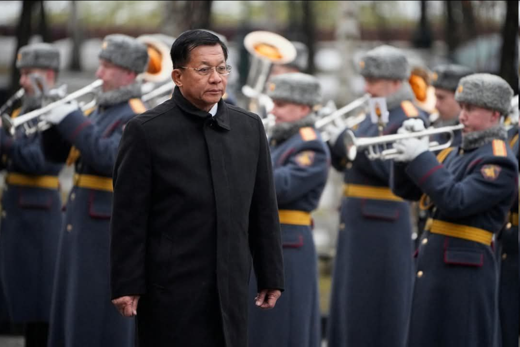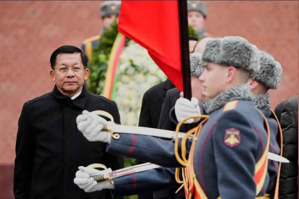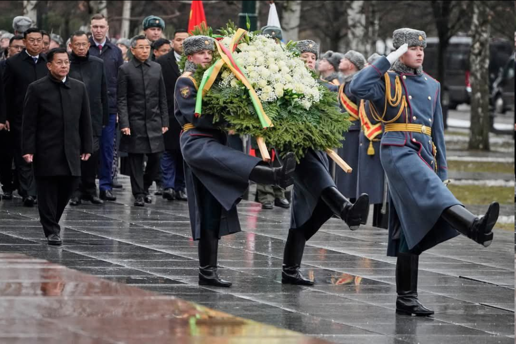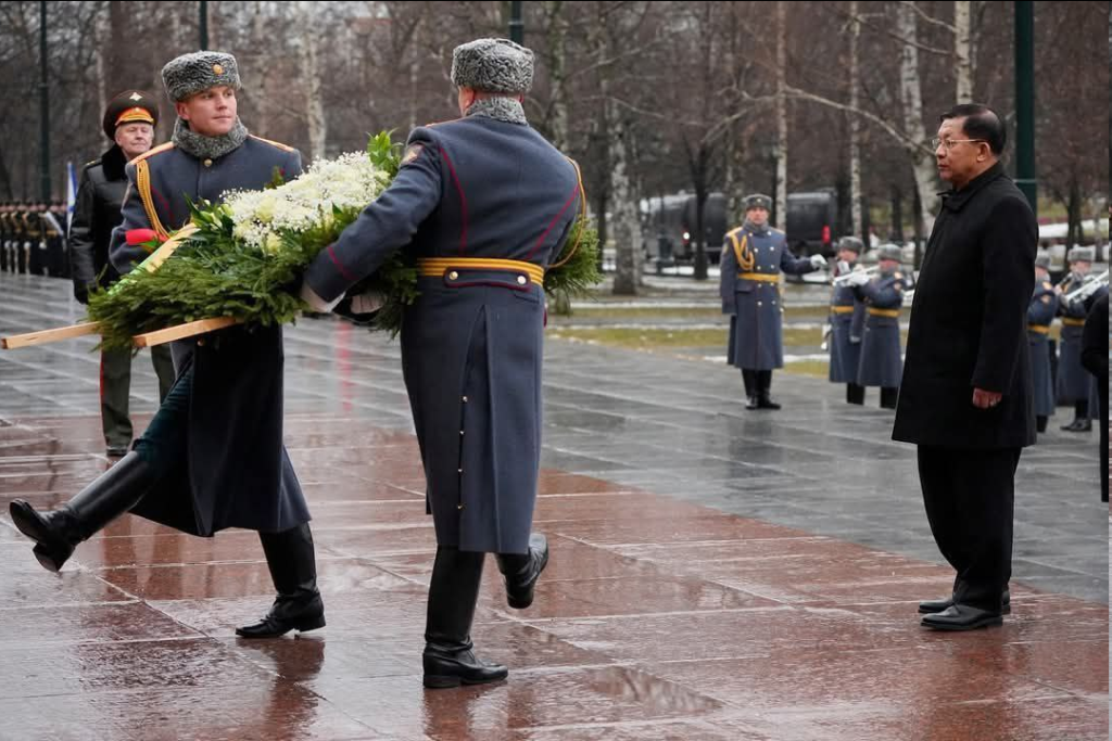 ရုရှားဖက်ဒရေးရှင်းနိုင်ငံ၊ မော်စကိုမြို့သို့ တရားဝင်ချစ်ကြည်ရေးခရီး ရောက်ရှိ နေသည့် နိုင်ငံတော်စီမံအုပ်ချုပ်ရေးကောင်စီဥက္ကဋ္ဌ နိုင်ငံတော်ဝန်ကြီးချုပ် ဗိုလ်ချုပ်မှူးကြီး မင်းအောင်လှိုင် သည်ယနေ့နံနက်ပိုင်းတွင် မော်စကိုမြို့ရှိ အညတရစစ်သည်ဂူဗိမာန်၌ လွမ်းသူပန်းခွေချအလေးပြုသည်။