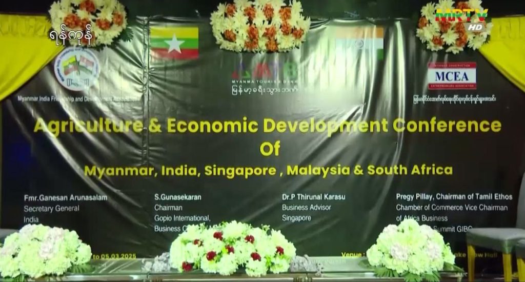 စိုက်ပျိုးရေးနှင့် စီးပွားရေးဖွံ့ဖြိုးတိုးတက်မှု အထောက်အပံ့ရရှိစေရန် ရည်ရွယ်၍ မြန်မာနိုင်ငံနှင့် အိန္ဒိယ၊ ကနေဒါ၊ စင်ကာပူ၊ မလေးရှား၊ တောင်အာဖရိက စတဲ့ ၅ နိုင်ငံမှ စီးပွားရေးလုပ်ငန်းရှင်များ တွေ့ဆုံဆွေးနွေးပွဲကို ရန်ကုန်မြို့ မင်္ဂလာတောင်ညွန့်မြို့နယ် ကန်ရိပ်သာလမ်းရှိ Esperado Lake View Hotel ၌ မတ်လ ၃ ရက်မှ ၅ ရက်နေ့အထိ ၃ ရက်တိုင်တိုင် ကျင်းပပြုလုပ်ခဲ့တယ်လို့ သိရပါတယ်။