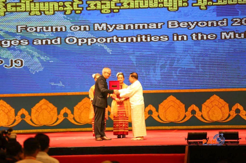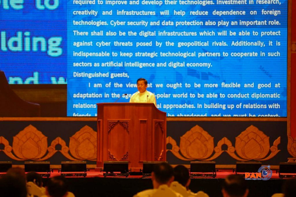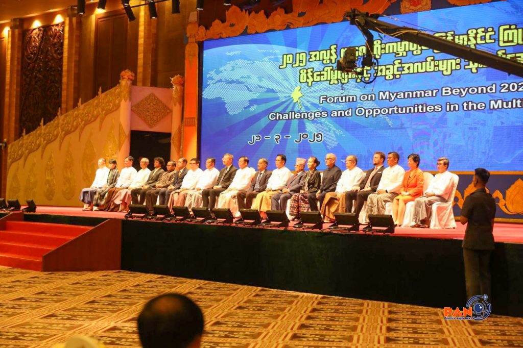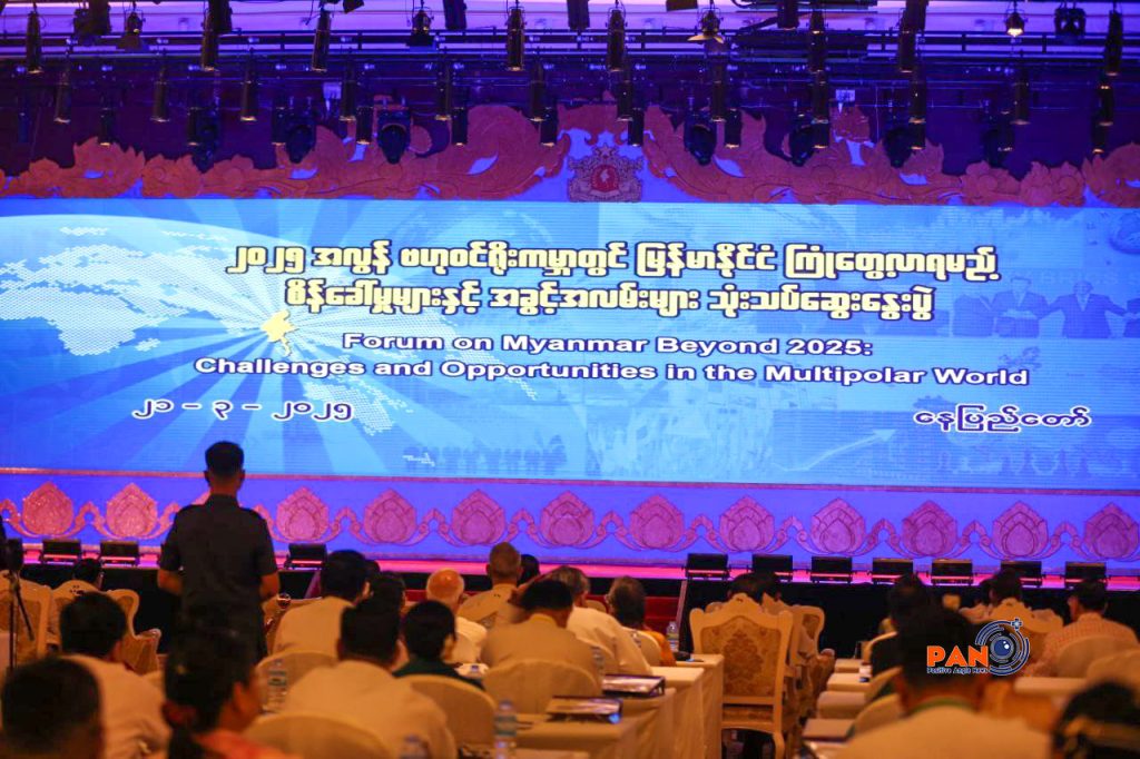 ၂ဝ၂၅ အလွန် ဗဟုဝင်ရိုးကမ္ဘာတွင် မြန်မာနိုင်ငံ ကြုံတွေ့လာရမည့် စိန်ခေါ်မှုများနှင့် အခွင့်အလမ်းများ သုံးသပ်ဆွေးနွေးပွဲကို နေပြည်တော်ရှိ မြန်မာ အပြည်ပြည်ဆိုင်ရာကွန်ဗန်းရှင်း ဗဟိုဌာန MICC-I မှာ ဒီနေ့မနက်ပိုင်းက ပြုလုပ်ခဲ့သည်။