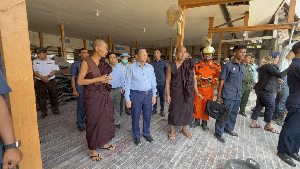 ယင်းနောက် နိုင်ငံတော်စီမံအုပ်ချုပ်ရေးကောင်စီဥက္ကဋ္ဌ နိုင်ငံတော် ဝန်ကြီးချုပ်နှင့် အဖွဲ့ဝင်များသည် ပျဉ်းမနားမြို့၊ ခေမာသီဝံကျောင်းတိုက်အတွင်းရှိ ဓမ္မာရုံတော် ငလျင် ဘေးဒဏ်ကြောင့် ပြိုကျပျက်စီးခဲ့မှုအား ကူညီကယ်ဆယ်ရေးနှင့် အပျက်အစီးများဖယ် ရှားရှင်းလင်းခြင်းလုပ်ငန်းများ ဆောင်ရွက်ပေးနေမှုအားသွားရောက်ကြည့်ရှုစစ်ဆေးပြီး တာဝန်ရှိသူများ၏ တင်ပြချက်များအပေါ်လိုအပ်သည်များ လမ်းညွှန်မှာကြားကာ ကူညီ ကယ်ဆယ်ရေးအဖွဲ့များအား အားပေးစကားပြောကြားသည်။