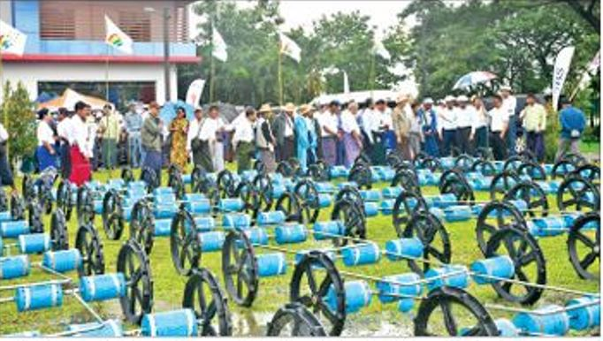 နိုင်ငံ့စီးပွားမြှင့်တင်ရေးရန်ပုံငွေဖြင့် မိုးစပါးစိုက်ပျိုးသည့် လှည်းကူးမြို့နယ်၊ မှော်ဘီမြို့နယ်နှင့် ထန်းတပင်မြို့နယ် တို့ရှိ သမဝါယမအသင်းသား တောင်သူများအား သွင်းအားစုပေးအပ်ပွဲနှင့် ရန်ကုန်တိုင်းဒေသကြီးအစိုးရအဖွဲ့က မိုးစပါး စိုက်ပျိုးသည့် တောင်သူများသို့ ဓာတ်မြေဩဇာ၊ မျိုးစေ့ချကိရိယာ၊ ဆိုလာနှစ်ချပ်တွဲ ခြောက်လက်မရေတင်ပန့်နှင့် ဆိုလာ ၁၄ ချပ်တွဲ အနိမ့်တင်ရေတင်စက်ပေးအပ်ပွဲကို ဇူလိုင်လ ၂၄ ရက်က လှည်းကူးမြို့နယ် ရဲမွန်ကျေးရွာအုပ်စုရှိ GBS ဝင်း၌ ကျင်းပပြုလုပ်ခဲ့ကြောင်း သိရပါတယ်။