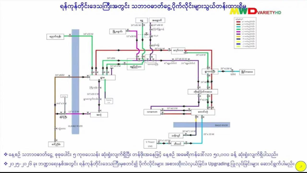 ရန်ကုန်တိုင်းဒေသကြီးအတွင်း သွယ်တန်းထားတဲ့ သဘာဝဓါတ်ငွေ့ပိုက်လိုင်းများ အစားထိုးလဲလှယ်ခြင်း၊ Upgrading ပြုလုပ်ခြင်းများကို ၂၀၂၅ -၂၀၂၆ ခုနှစ် ဘဏ္ဍာရေးနှစ်အတွင်း ဆောင်ရွက်မည်ဖြစ်ကြောင်း ပြည်တွင်းသဘာဝ ဓါတ်ငွေ့သုံးစွဲမှုအား အကျိုးထိရောက်စွာ အသုံးပြုနိုင်ရေးညှိနှိုင်းအစည်းအဝေးမှာ စွမ်းအင်ဝန်ကြီးဌာန ပြည်ထောင်စု ဝန်ကြီး ဦးကိုကိုလွင် က ပြောကြားခဲ့ပါတယ်။
