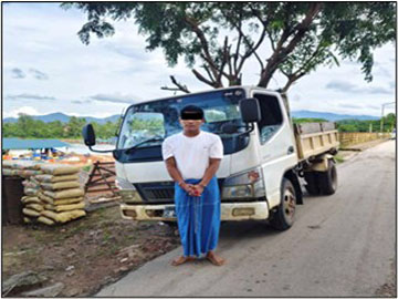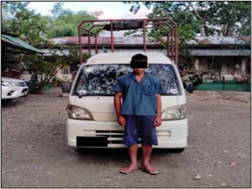 ဟိုပင်မြို့ကနေ မိုးကောင်းမြို့ဘက်ကို မိုးကောင်းမြို့နယ်၊ နန့်ခွင်ကျေးရွာနေ ကောင်းခန့်ပိုင်(၂၃)နှစ် မောင်းနှင်လာသည့် MDY-8/6M-XXXX TOYOTA HIJET မော်တော်ယာဉ်ကို လုံခြုံရေးပူးပေါင်းအဖွဲ့က စက်တင်ဘာ ၂ ရက် ညနေ ၄ နာရီ ၄၀ မိနစ်တွင် ရပ်တန့်စစ်ဆေးခဲ့ရာ လိုင်စင်မဲ့မော်တော်ယာဉ်ဖြစ်ကြောင်း စစ်ဆေးတွေ့ရှိရတာကြောင့် ကောင်းခန့်ပိုင်ကို ပင်းဘောနယ်မြေရဲစခန်းက (ပ)၁၃/၂၀၂၅၊ ပို့ကုန်သွင်းကုန် ဥပဒေပုဒ်မ ၈ နဲ့ ဖမ်းဆီးအရေးယူထားတယ်လို့ သိရပါတယ်။