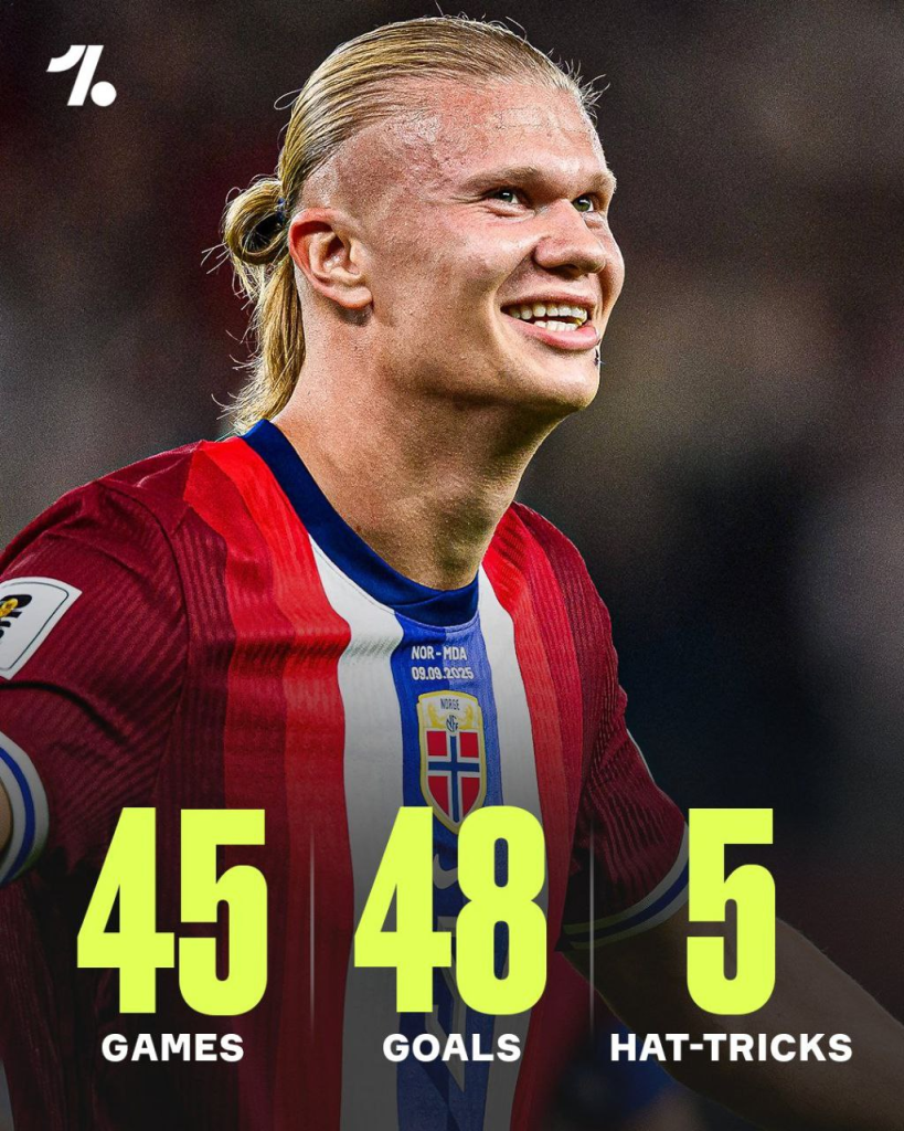 မန်စီးတီးအသင်းနဲ့ နော်ဝေအသင်းတိုက်စစ်မှူး ဟာလန်း ဟာ နော်ဝေလက်ရွေးစင်အသင်းအတွက် ပထမဆုံး အကြိမ်အဖြစ် တစ်ပွဲတည်း သွင်းဂိုး ၅ ဂိုးအထိ သွင်းယူနိုင်ခဲ့ကြောင်း သိရပါတယ်။