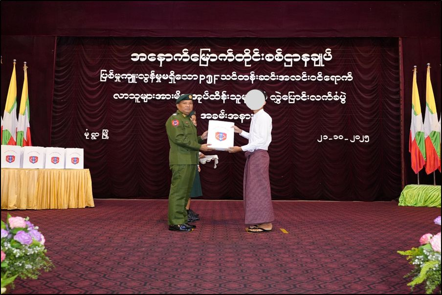 အလားတူ စစ်ကိုင်းတိုင်းဒေသကြီး မြင်းမူမြို့နယ်၊ မုံရွာမြို့နယ်၊ ဝန်းသိုမြို့နယ်၊ ရွှေဘိုမြို့နယ်နှင့် ကန့်ဘလူမြို့နယ်တို့မှ PDF အမည်ခံအဖွဲ့ဝင် အမျိုးသား ၁၈ ဦးနှင့် အမျိုးသမီးသုံးဦးတို့အား တာဝန်ရှိသူများက ကြိုဆိုလက်ခံ၍ မိဘအုပ်ထိန်းသူများထံ ပြန်လည်လွှဲပြောင်းအပ်နှံပွဲကို အနောက်မြောက်တိုင်းစစ်ဌာနချုပ်၊ ဇေယျာသီရိခန်းမ၌ ပြုလုပ်ရာ တိုင်းဒေသကြီးဝန်ကြီးချုပ် ဦးမြတ်ကျော်၊ တိုင်းမှူး ဗိုလ်မှူးချုပ်မျိုးမင်းထွေးနှင့် ဌာနဆိုင်ရာ တာဝန်ရှိသူများ၊ ဥပဒေဘောင်အတွင်း ပြန်လည်ဝင်ရောက်လာခဲ့ကြသည့် အဖွဲ့ဝင်များနှင့် ၎င်းတို့၏ မိဘအုပ်ထိန်းသူများ တက်ရောက်ခဲ့ကြသည်။