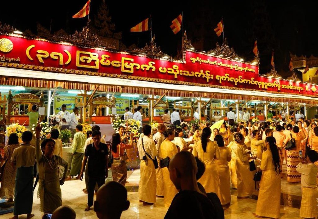 ဝိနည်းတော်နှင့်အညီ ညတွင်းချင်းချုပ်လုပ်ပြီး လပြည့်နေ့အရုဏ်မတက်မီ သတ်မှတ်ထားသည့် ဗုဒ္ဓ ရုပ်ပွါးတော် (၉) ဆူတို့တွင် စည်ကားသိုက်မြိုက်စွာ စည်းစည်းလုံးလုံး၊ သိုက်သိုက်ဝန်းဝန်းနှင့် စုပေါင်းလှည့်လည် ပူဇော်ကပ်လှူခဲ့ကြောင်း သိရပါတယ်။