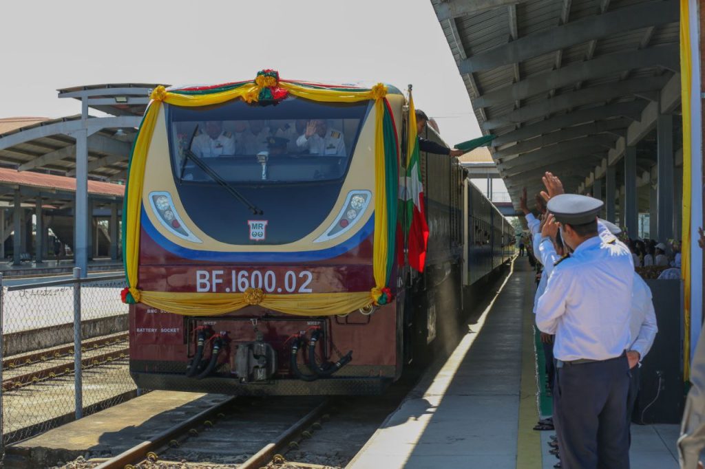ဘက်ထရီလျှပ်စစ်စက်ခေါင်း အသုံးပြု လေအေးပေးစက်ပါ လေအိတ်ရထားတွဲဆိုင်း စတင်ပြေးဆွဲခြင်း ဖွင့်ပွဲအခမ်းအနားကိုတော့ ဒီနေ့ နိုဝင်ဘာ ၂၂ နံနက်ပိုင်းက ချမ်းအေးသာစံမြို့နယ်၊ မန္တလေးဘူတာကြီးမှာ ကျင်းပပြုလုပ်ခဲ့ပါတယ်။