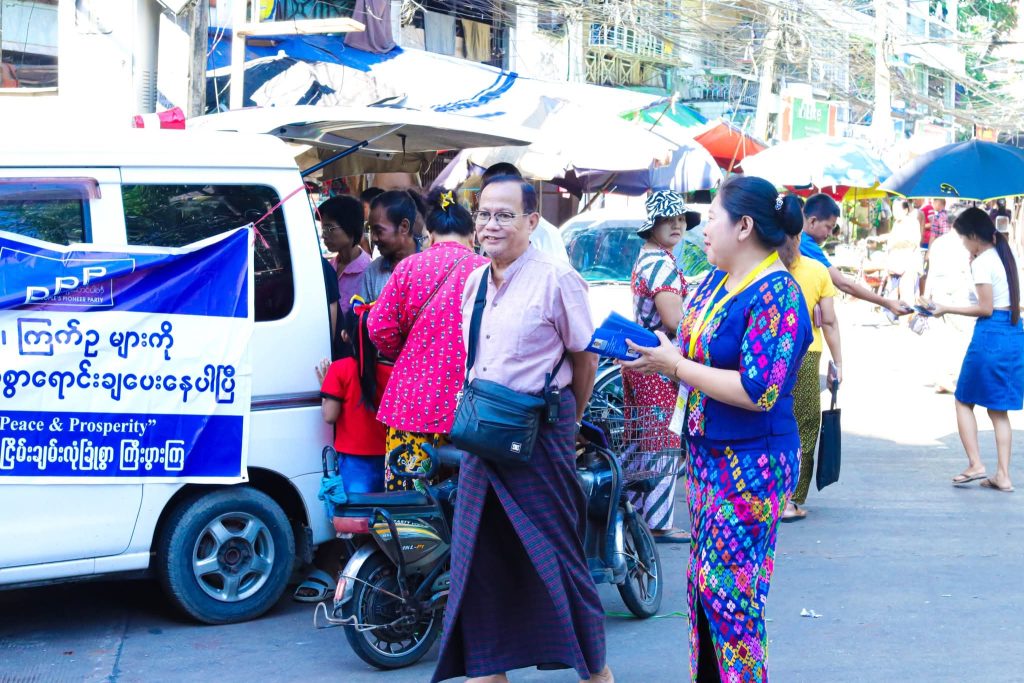 မန္တလေးနည်းတူ ရန်ကုန်တိုင်းဒေသကြီးမှာလည်း မဲဆွယ်ပွဲတွေပြုလုပ်နေသလို မျက်စိအခမဲ့စစ်ဆေးပေးတာတွေ မျက်မှန်လှူဒါန်းတာတွေ ကျန်းမာရေးစောင့်ရှောက်မှုပေးတာတွေအပြင် ဆန်၊ ဆီ၊ ကြက်ဥတွေကိုလည်း လှည့်လည်ရောင်းချရင်း လက်ကမ်းစာဆောင်ဝေတာတွေလည်း ပြုလုပ်နေတာတွေ့ရပါတယ်။
