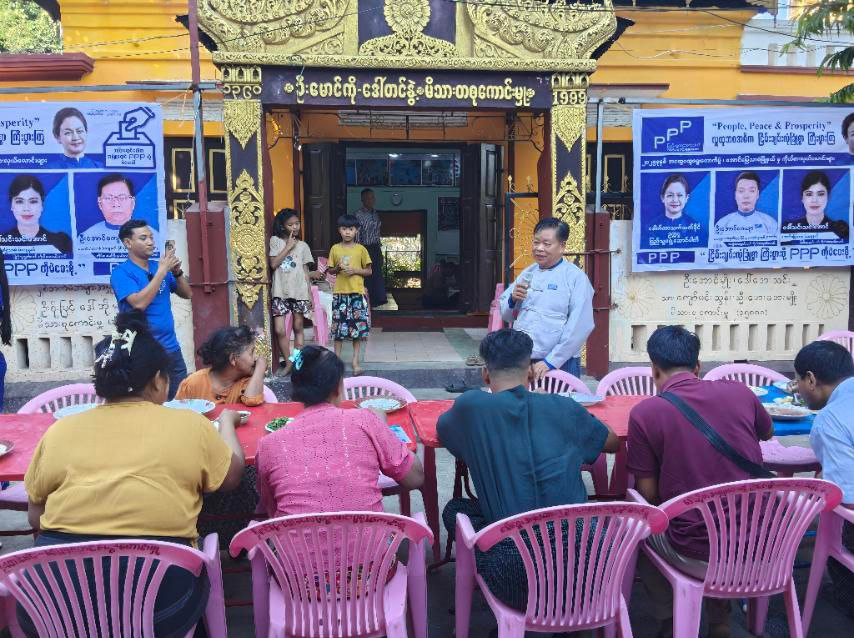 မန္တလေးတိုင်းဒေသကြီး အောင်မြေသာစံမြို့နယ်၊ မင်းတဲအီကင်းရပ်ကွက်၊ အကွက်(၁၁၀)၊ ၂၁လမ်း×၉၀(A) လမ်းထောင့်မှာ ပြည်သူ့ရှေ့ ဆောင်ပါတီက စတုဒီသာကြာဇံဟင်းကျွေးမွေးကာ မဲဆွယ်စည်းရုံးတာတွေ ဆောင်ရွက်ခဲ့တယ်လို့ အဲဒီရပ်ကွက်မှာနေထိုင်သူတွေက ပြောပါတယ်။