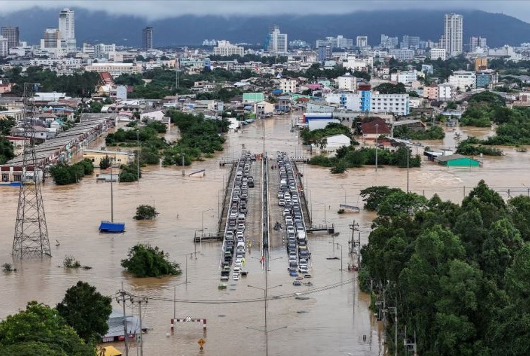 ရက်အတန်ကြာ စံချိန်တင်မိုးသည်းထန်စွာရွာသွန်းမှု ဖြစ်ပွားပြီးနောက် ထိုင်းနိုင်ငံတောင်ပိုင်းရှိ ပြည်သူများ သည် ရေဘေးဒဏ်သင့်ကာ အခက်အခဲများနှင့် ရင်ဆိုင်ကြုံတွေ့နေကြရကြောင်း NHK သတင်းဌာနတွင် ဖော်ပြထားသည်။