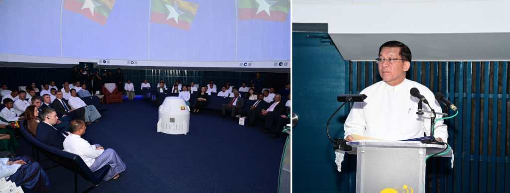 နိုင်ငံတော်အနေနဲ့ လူမှုစီးပွားဖွံ့ဖြိုးရေးကဏ္ဍတွေမှာ အာကာသနည်းပညာတွေကို ငြိမ်းချမ်းတဲ့ရည်ရွယ်ချက်နဲ့ အသုံးချနိုင်ရေးအတွက် မြန်မာအာကာသအေဂျင်စီကို ဖွဲ့စည်းတာဝန်ပေးအပ်ခဲ့ပြီး နိုင်ငံတကာမိတ်ဖက်အဖွဲ့အစည်းတွေနဲ့ပူးပေါင်းကာ ပူးပေါင်းကာ ရေတို/ရေရှည် စီမံကိန်းတွေသတ်မှတ်ပြီး စတင်အကောင်အထည်ဖော်ဆောင်ရွက်နေပြီဖြစ်တယ်လို့ နိုင်ငံတော် ယာယီသမ္မတကပြောပါတယ်။