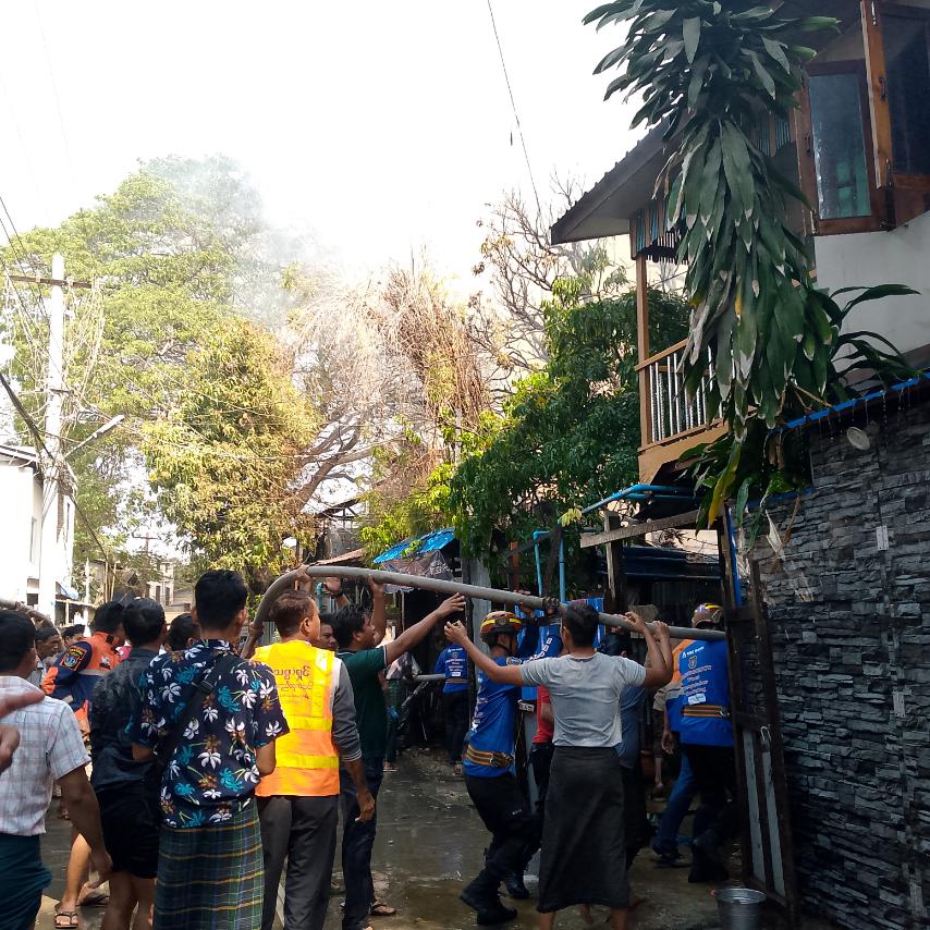 မီးလောင်သည့်နေရာသို့ မြို့နယ် မီးသတ်တပ်ဖွဲ့ဝင်များမှ သွားရောက်မီးငြှိမ်းသတ်ခဲ့ရာ မွန်းလွဲ၁နာရီ၁၅မိနစ်အချိန် တွင် မီးထိန်းနိူင်ခဲ့ပြီး မွန်းလွဲ၁နာရီခွဲ အချိန်တွင်မီးငြိမ်းသတ်နိူင်ခဲ့ကြောင်း သိရသည်။