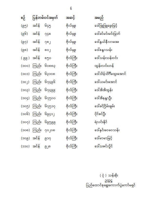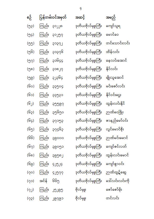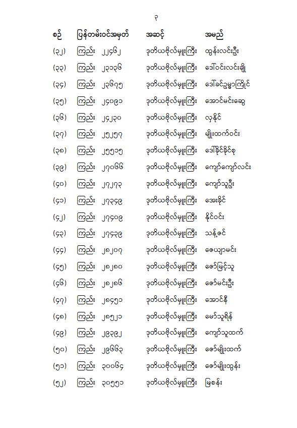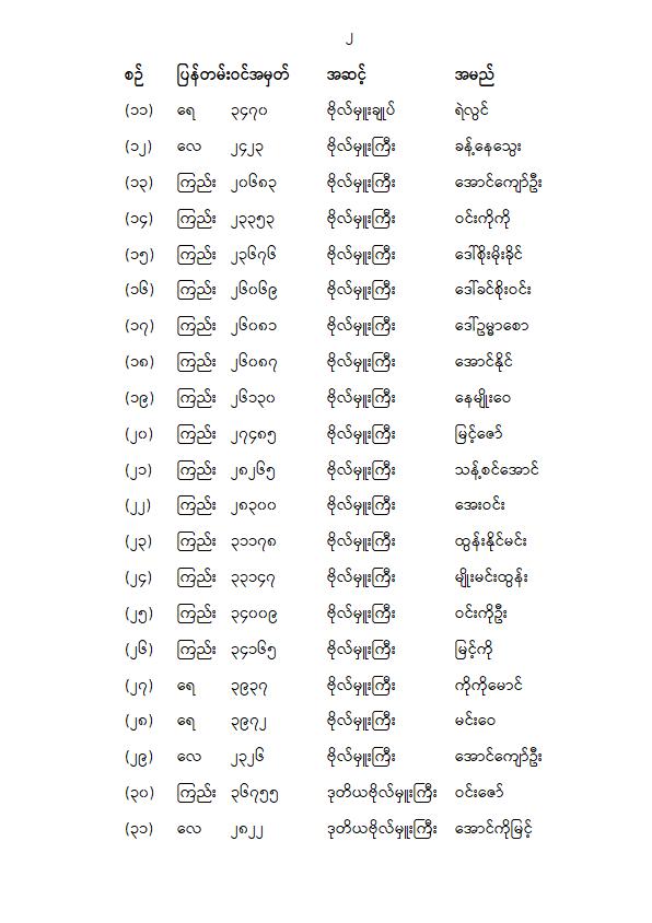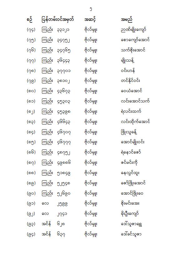 တပ်မတော်သားပြည်သူ့လွှတ်တော်ကိုယ်စားလှယ် ၁၁၀ ဦးရဲ့အမည်စာရင်းကို မနေ့က ထုတ်ပြန်ကြေညာပါတယ်။