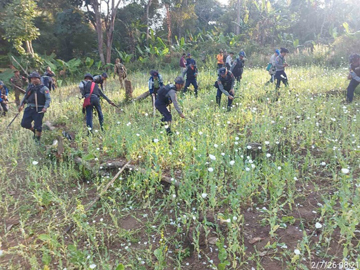 ရှမ်းပြည်နယ်အတွင်းရှိ လွိုင်လင်၊ မိုင်းဖြတ်၊ နမ့်စန်၊ ဟိုပုံး၊ ဆီဆိုင်၊ ပင်လောင်းနှင့် ကွန်ဟိန်းမြို့နယ်အတွင်းမှ ဘိန်းစိုက်ခင်း ၂၈၈.၅ ဧက ကို ရဲတပ်ဖွဲ့ဝင်များမှ ဖေဖော်ဝါရီလ ၇ ရက်နေ့ နံနက် ၇ နာရီမှစတင်ပြီး ညနေ ၄ နာရီအထိ ဖျက်ဆီးခဲ့ကြောင်း မြန်မာနိုင်ငံရဲတပ်ဖွဲ့ထံမှ သိရသည်။