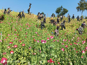 လွိုင်လင်မြို့နယ်၊ ဆဟောင်းကျေးရွာအုပ်စု၊ နောင်ဟိုင်းကျေးရွာနှင့် ဝါးထေးကျေးရွာအနီးတစ်ဝိုက်ရှိ သီးပွင့်ဆဲ ဘိန်းစိုက်ခင်း ၅၅ ဧကခန့်၊ မိုင်းဖြတ်မြို့နယ်၊ ဟွေရှိုကျေးရွာအုပ်စု၊ အားထေ့ကျေးရွာအနီးတစ်ဝိုက်ရှိ သီးပွင့်ဆဲ ဘိန်းစိုက်ခင်း ၁၁.၅ ဧကခန့်၊ နမ့်စန်မြို့နယ်၊ ဘန့်ဟင်ကျေးရွာအုပ်စု၊ တွန်ကျိုင်းကျေးရွာအနီးတစ်ဝိုက်ရှိ သီးပွင့်ဆဲ ဘိန်းစိုက်ခင်း ၆၆ ဧကခန့်၊ ဆီဆိုင်မြို့နယ်၊ ပါလောပါကယ် ကျေးရွာအုပ်စု၊ ညိုမီးကျေးရွာအနီးတစ်ဝိုက်ရှိ သီးပွင့်ဆဲ ဘိန်းစိုက်ခင်း ၁၅ ဧကခန့်တို့ကို ခရိုင်နှင့်မြို့နယ်ရဲတပ်ဖွဲ့ဝင်များ ဌာနဆိုင်ရာဝန်ထမ်းများပါဝင်သော ပူးပေါင်းအဖွဲ့မှ ဖျက်ဆီးနိုင်ခဲ့ကြောင်း သိရသည်။