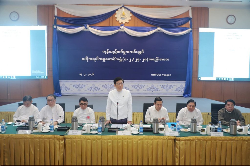 ကုန်သည်စက်မှုအသင်းချုပ် အမှုဆောင်သက်တမ်းသစ် ဗဟိုအလုပ်အမှုဆောင်အဖွဲ့ အစည်းအဝေး (ဗ-၂/၂၅-၂၈) ကို ဖေဖော်ဝါရီ ၁၉ ရက်က ကုန်သည်စက်မှုအသင်းချုပ် အစည်းအဝေးခန်းမမှာကျင်းပခဲ့တာဖြစ်ပြီး အသင်းရဲ့ ဥက္ကဋ္ဌတွေအပါဝင် ဗိုလ်အလုပ်အမှုဆောင်ကော်မတီတွေလည်းတက်ရောက်တယ်လို့ အဲဒီအသင်းထံက သိရပါတယ်။