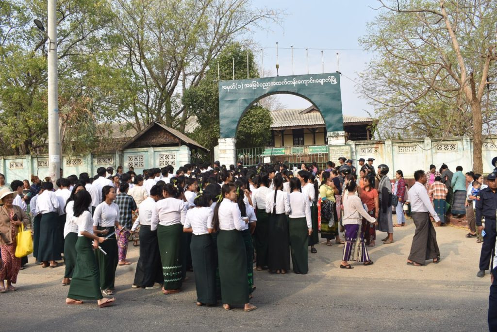 ၂၀၂၅-၂၀၂၆ ပညာသင်နှစ် Grade-12 တက္ကသိုလ်ဝင်စာမေးပွဲကို မတ်လ (၁၁) ရက် နံနက်ပိုင်းမှစတင်၍ တစ်နိုင်ငံလုံးအတိုင်းအတာဖြင့် စတင်ဖြေဆိုလျက်ရှိရာ မကွေးတိုင်းဒေသကြီးဝန်ကြီးချုပ် ဦးတင့်လွင်နှင့် တာဝန်ရှိသူများသည် မကွေးမြို့ အမှတ် (၃) နှင့် အမှတ် (၄) အခြေခံပညာအထက်တန်းကျောင်း စာစစ်ဌာနများသို့ သွားရောက်၍ အဆိုပါကျောင်းများတွင် ၂၀၂၅-၂၀၂၆ ပညာသင်နှစ်၊ Grade-12 တက္ကသိုလ်ဝင်စာမေးပွဲ ကျောင်းသား၊ ကျောင်းသူများ မြန်မာစာ ဘာသာရပ် အေးချမ်းစွာ ဖြေဆိုနေမှုကို ကြည့်ရှုအားပေးခဲ့ကြောင်း သိရသည်။