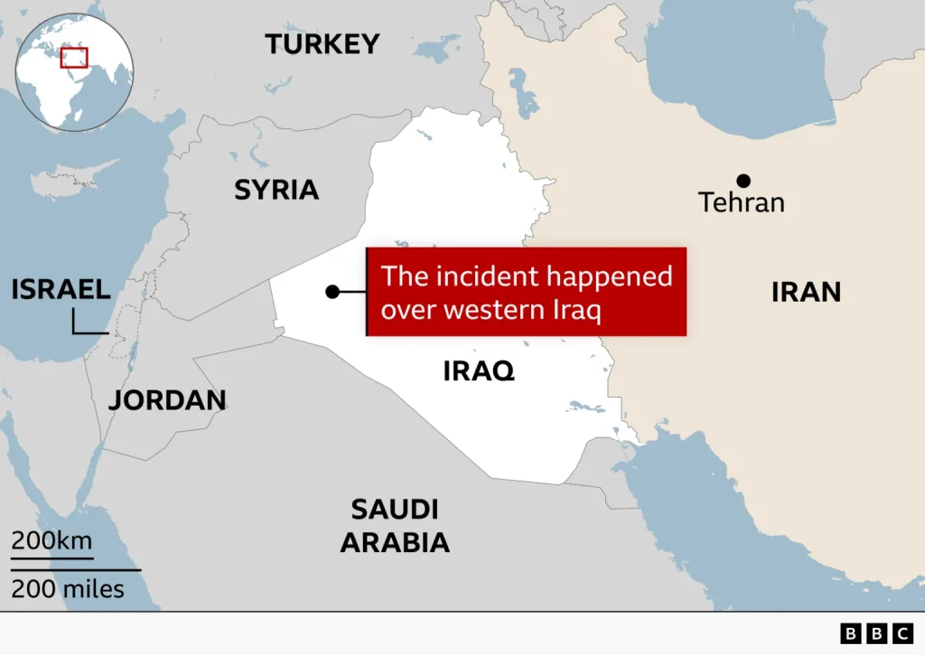 အမေရိကန် လေတပ်ပိုင် KC-135 Stratotanker ဆီဖြည့်လေယာဉ်သည် ယနေ့ အရှေ့အလယ်ပိုင်း ဒေသစံတော်ချိန် နံနက်အစောပိုင်း (၂:၃၀)အချိန်ခန့်တွင် ရတ်-ဆီးရီးယား နယ်စပ်အနီး (အမေရိကန်တပ်များ အခြေစိုက်ရာ အယ်လ်တာ့ဖ် – Al-Tanf ဒေသအနီး ဝေဟင်တွင် ကင်းလှည့်နေတဲ့ အမေရိကန် တိုက်လေ ယာဉ်များကို ဝေဟင်၌ ဆီဖြည့်ပေးရန် (Mid-air Refueling) ပျံသန်းနေစဉ် ပစ်ချခံခဲ့ရသည်။