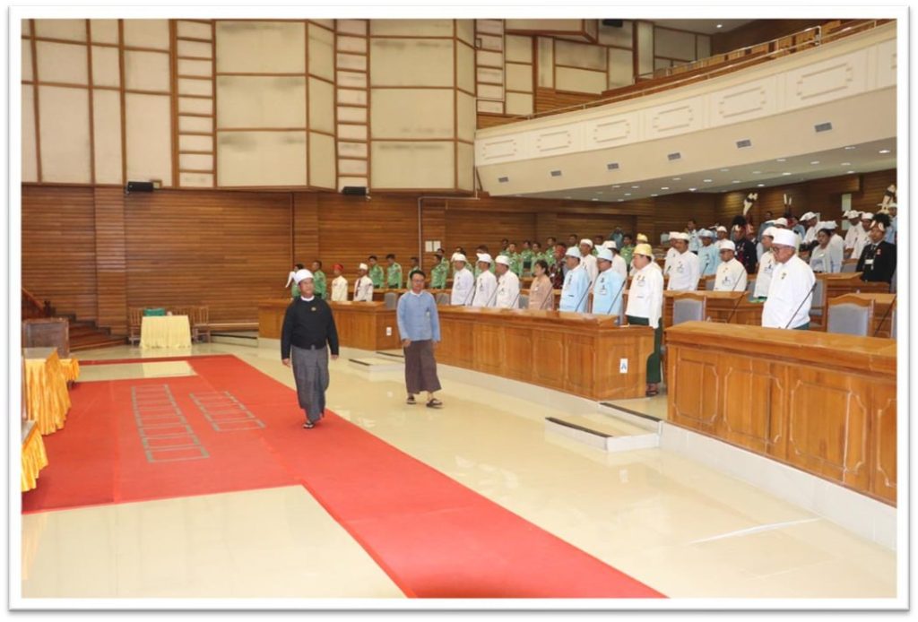 အစည်းအဝေးသို့ ရွေးကောက်ခံ ကိုယ်စားလှယ် (၆၄) ဦး၊ တပ်မတော်သားလွှတ်တော်ကိုယ်စားလှယ် (၂၁) ဦး စုစုပေါင်း (၈၅) ဦး တက်ရောက်ခဲ့ပြီး တက်ရောက်ခွင့်ရှိသူအားလုံး တက်ရောက်ခြင်းဖြင့် ၁၀၀ ရာခိုင်နှုန်းပြည့်အတွက် လွှတ်တော်အစည်းအဝေး အထမြောက်ကြောင်း တိုင်းဒေသကြီးလွှတ်တော်ဥက္ကဋ္ဌ ဦးတင့်လှိုင်မြင့်မှ ကြေညာခဲ့သည်။