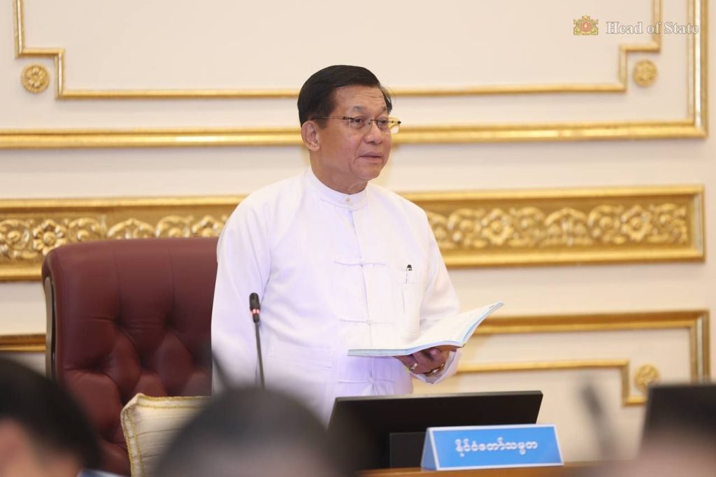 အဆိုပါအစည်းအဝေးတွင် နိုင်ငံတော်သမ္မတမှ တည်ငြိမ်အေးချမ်းမှုရှိမှသာ ဖွံ့ဖြိုးတိုးတက်မှုကိုဖော်ဆောင်နိုင်မည်ဖြစ်ပြီး ငြိမ်းချမ်းရေးနှင့်ပတ်သက်၍ PDF အမည်ခံအကြမ်းဖက်အဖွဲ့များအနေဖြင့် နိုင်ငံ၏ အချို့သောနေရာဒေသများတွင် အဖျက်အမှောင့်လုပ်ရပ်မျိုးစုံကို ကျုးလွန်နေကြသည်ကိုတွေ့ရှိရပြီး အများစုအနေဖြင့် ဆက်ကြေးများ၊ ဂိတ်ကြေးများတောင်းခံခြင်း၊ ဒေသအလိုက်မှ ထွက်ရှိသည့် သစ်တောသယံ ဇာတများ၊ မြေပေါ် မြေအောက် သယံဇာတများကို တရားမဝင်ထုတ်ယူ၍ ၎င်းတို့ ကိုယ် ကျိုးအတွက်အသုံးပြု နေကြသည်ဟု ပြောဆိုခဲ့ကြောင်း သိရသည်။