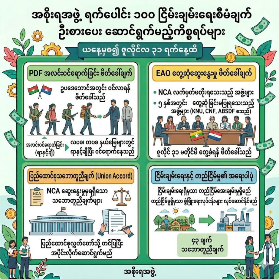 လပခကတော့ပိုများတာပေါ့ ရာနဲ့ချီပြီးတော့ ဝင်ကြတယ်။ ဒါထက်လည်း လာဖို့အတွက် သူတို့တောင်းဆိုနေတာ တွေလည်း ရှိပါတယ်။ ကျွန်တော်တို့က ကြိုဆိုပါတယ်။ PDF နဲ့ပတ်သက်ပြီးတော့။ ရက်ပေါင်း ၁၀၀ အတွင်းမှာ လာပြီးတော့ ငြိမ်းချမ်းရေးအတွက် လာကြပါ။