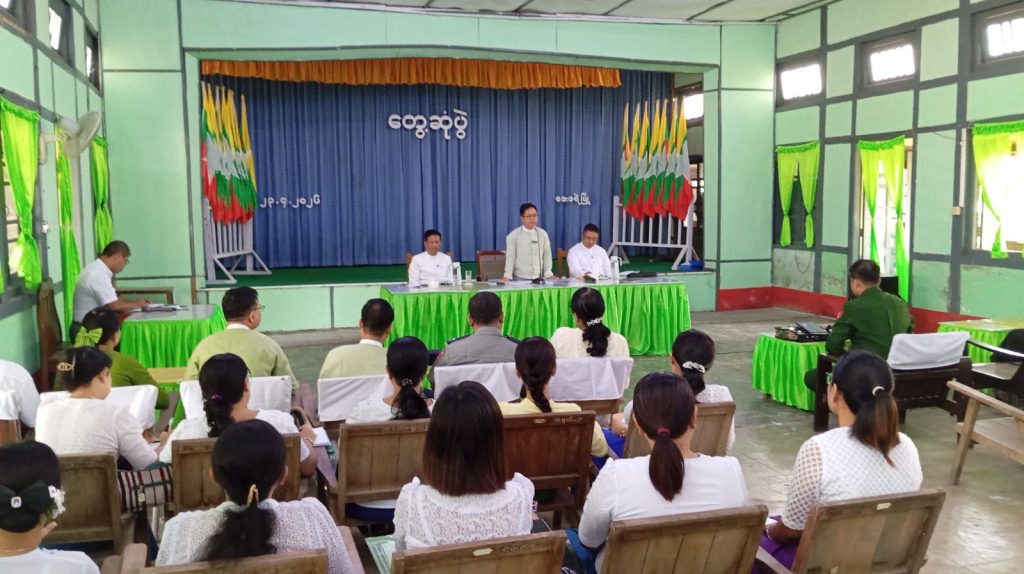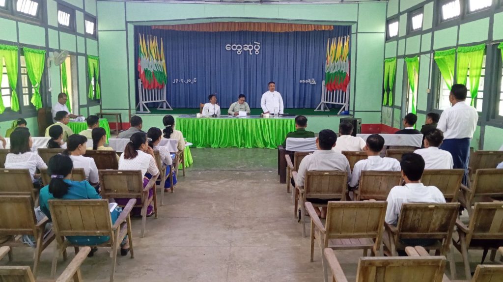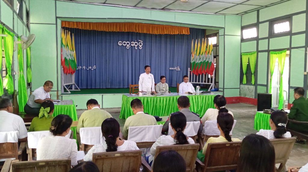အစည်းအဝေးတွင် မြို့နယ်စီမံခန့်ခွဲရေးနှင့် အုပ်ချုပ်ရေးကော်မတီဥက္ကဋ္ဌ ဦးမြသိန်းမောင်က ဒေသဖွံ့ဖြိုးရေးလုပ်ငန်းများကို စဉ်ဆက်မပြတ် ဆောင်ရွက်နိုင်ရေးအတွက် လိုအပ်ချက်များကို ပြန်လည်တင်ပြဆွေးနွေးရန် ရှင်းလင်းပြောကြားခဲ့သည်။