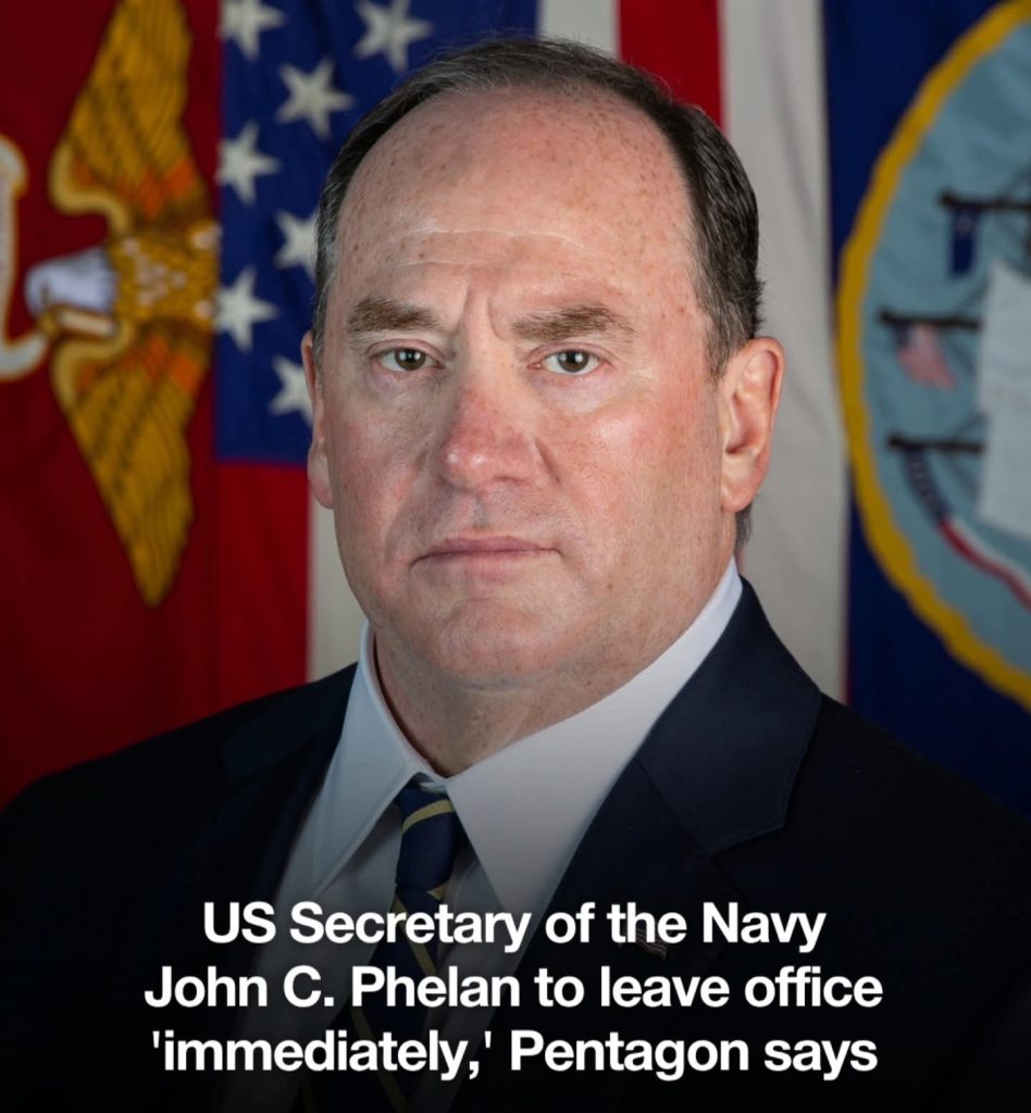 အမေရိကန်ရေတပ်ဝန်ကြီး ဂျွန်ဖီလန်(John Phelan)သည် ပင်တဂွန်စစ်ဌာနချုပ်၏ အဆင့်မြင့်ခေါင်းဆောင်ပိုင်းနှင့် လပေါင်းများစွာ သဘောထားကွဲလွဲမှုများဖြစ်ပွားခဲ့ပြီးနောက် ဗုဒ္ဓဟူးနေ့တွင် ရာထူးမှ ရုတ်တရက်ထုတ်ပယ်ခြင်းခံခဲ့ရသည်။ ဤသည်မှာ အီရန်နှင့် စစ်ပွဲဖြစ်ပွားနေချိန်အတွင်း ပင်တဂွန်ခေါင်း ဆောင်ပိုင်းကြားမှ နက်ရှိုင်းသော အက်ကြောင်းများကို မီးမောင်းထိုးပြနေခြင်း ဖြစ်သည်။