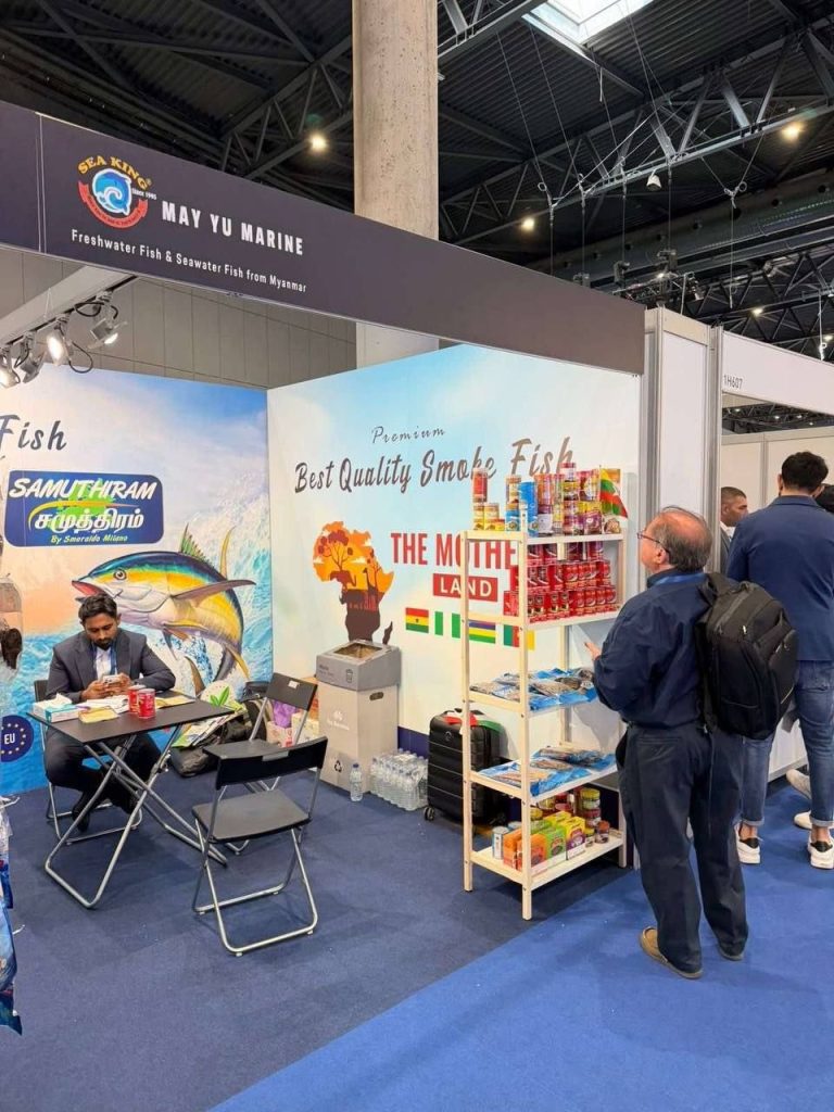 စပိန်နိုင်ငံ၊ ဘာစီလိုနာမြို့တွင် ဧပြီလ ၂၁ ရက်မှ ၂၃ ရက်နေ့အထိ ကျင်းပခဲ့သည့် Seafood Expo Global ပြပွဲတွင် မြန်မာနိုင်ငံမှ ရေထွက်ကုန်လုပ်ငန်းလည်း ပါဝင်ပြသခဲ့ကြောင်း သိရသည်။အဆိုပါရေထွက်ကုန်ပြပွဲတွင် မေယု ရေထွက်ကုန်လုပ်ငန်းလည်း ဝင်ရောက်ပြသခဲ့ကြောင်း သိရသည်။