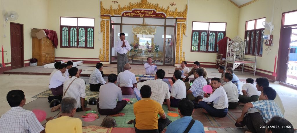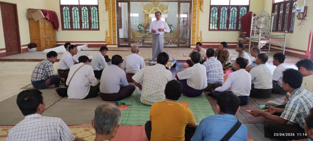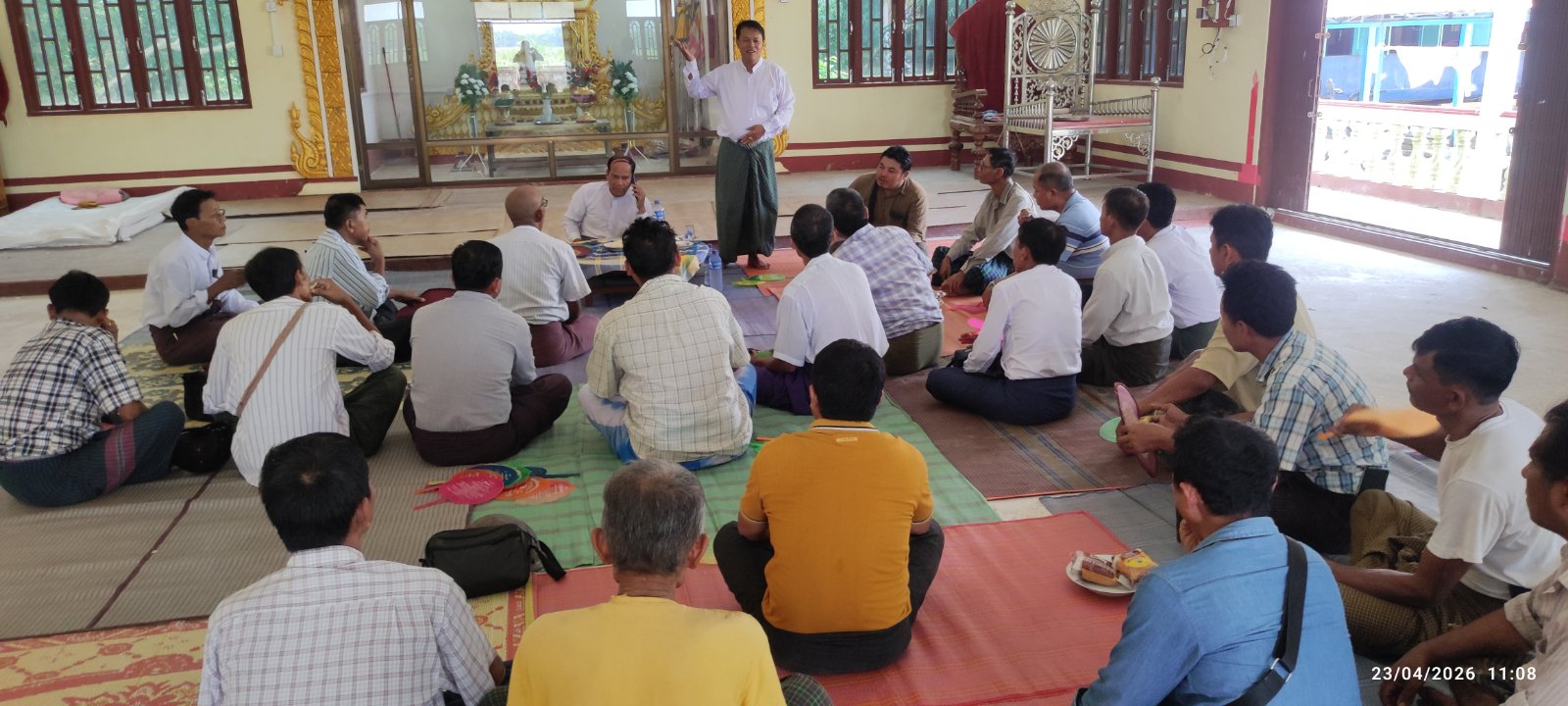 နံနက် ၉ နာရီခွဲတွင် ပြည်သူ့လွှတ်တော်ကိုယ်စားလှယ် ဦးဌေးဝင်းနှင့် တိုင်းဒေသကြီးလွှတ်တော်ကိုယ်စားလှယ် ဦးအေးဟန်တို့ ဦးဆောင်၍ ဟင်္သာတမြို့ စစ်ကုန်းတိုက်နယ်၊ အင်းဓဝယ်အုပ်စု၊ မီးနင်းကျေးရွာရှိ မင်းကျောင်းဓမ္မာရုံတွင် စစ်ကုန်းအုပ်စုအတွင်းရှိ ကျေးရွာအုပ်ချုပ်ရေးမှူးများနှင့် ရပ်မိရပ်ဖ ၃၅ ဦးတို့နှင့် တွေ့ဆုံဆွေးနွေးခဲ့ကြသည်။