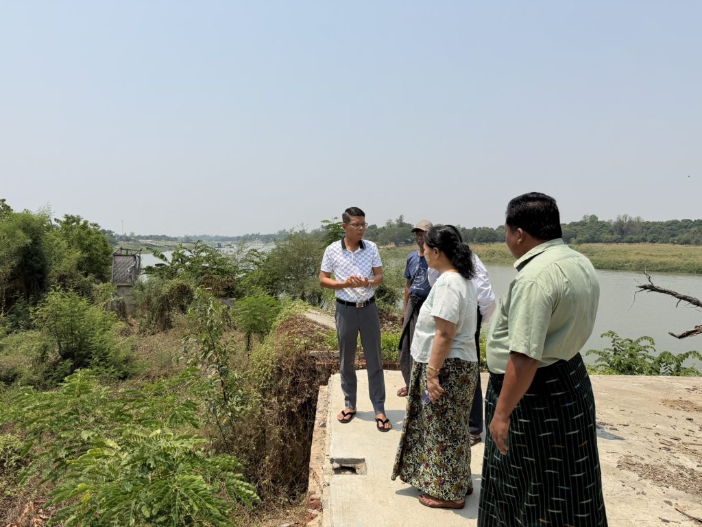 တာဝန်ရှိသူများသည် ဘုန်းတော်နိုင်ငံကျေးရွာအုပ်စု၊ အိုးထုတ်တန်းကူးတို့ဆိပ်အနီးရှိ ငါးမျှားဝချောင်းထိပ်သို့ သွားရောက်ကာ ရေထိန်းတံခါးတပ်ဆင်နိုင်ရေးအခြေအနေများကို လေ့လာစစ်ဆေးခဲ့ကြသည်။