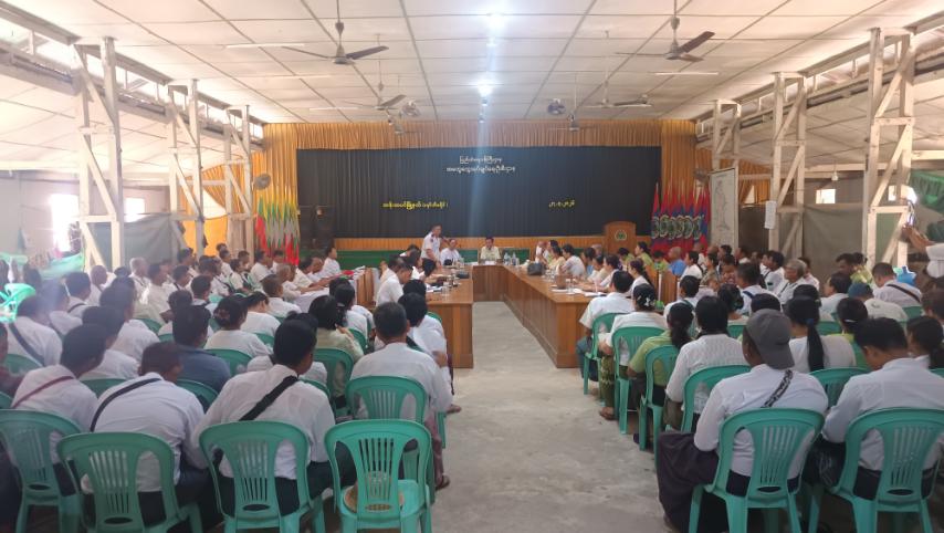 အစည်းအဝေးသို့ ထန်းတပင်မြို့နယ် ပြည်သူ့လွှတ်တော်ကိုယ်စားလှယ် ဦးသိန်းရီ၊ မြို့နယ်စီမံခန့်ခွဲရေးနှင့် အုပ်ချုပ်ရေးကော်မတီဥက္ကဋ္ဌ ဦးနိုင်နိုင်ဦး၊ စီမံအဖွဲ့ဝင်များဖြစ်သော လူဝင်မှုကြီးကြပ်ရေးနှင့် ပြည်သူ့အင်အားဦးစီးဌာနမှ ဦးစီးမှူး ဦးခင်ဆွေ၊ အတွင်းရေးမှူး ရဲမှူးခင်စိုးတို့နှင့်အတူ မြို့နယ်ပညာရေးမှူး၊ ဌာနဆိုင်ရာအကြီးအကဲများ၊ ရပ်ကွက်/ကျေးရွာအုပ်ချုပ်ရေးမှူးများ တက်ရောက်ခဲ့ကြသည်။အစည်းအဝေးတွင် ကျေးလက်ဒေသဖွံ့ဖြိုးရေးလုပ်ငန်းများ၊ တောင်သူလယ်သမားများ၏ လယ်ယာစိုက်ပျိုးရေးလုပ်ငန်းများတွင် လိုအပ်လျက်ရှိသော စက်သုံးဆီရရှိရေးကိစ္စ၊ နိုင်ငံသားမှတ်ပုံတင်နှင့် သန်းခေါင်စာရင်းရရှိရေးကိစ္စများ၊ ပညာရေးကဏ္ဍလိုအပ်ချက်များကို ကျေးရွာအလိုက် တင်ပြဆွေးနွေးခဲ့ကြသည်။